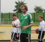 Sein erster Berührungspunkt mit Blindenfußball war das Hallenmasters auf St. Pauli 2008, wo er damals beim MTV Stuttgart aushalf. Seit dem ist er aktiv bei der Eintracht aus Braunschweig. Ob Zeugwart oder lautstarker Richtungsanweiser hinter dem Tor: er sieht die Lücken, trotz Dioptrinstärke 7.